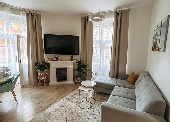 Beliggende i nærheden af Vinoteka Noelka, Stylish 1 Bedroom Plus Office At Amazing Location ferielejlighed har en terrasse og værelser med Wi-Fi i hele ejendommen. Indkvartering ligger 5 minutters gåtur fra Jiriho z Podebrad metrostation.